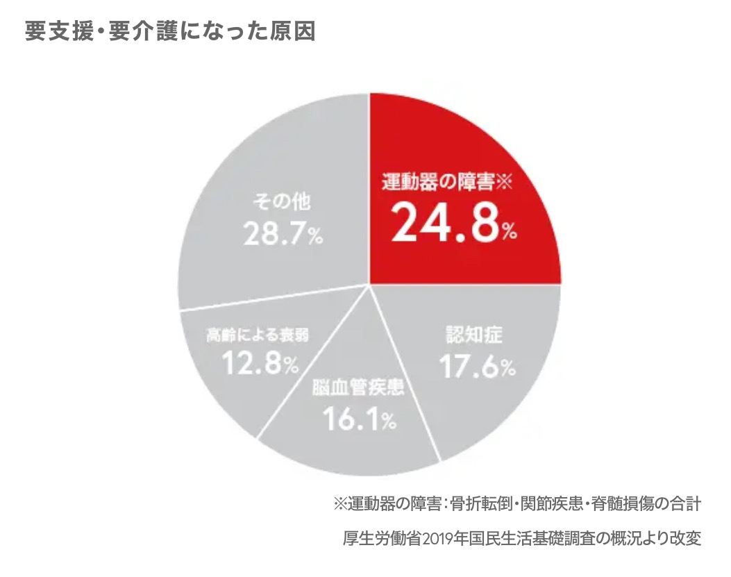 その原因の1/4が、運動器(関節や筋肉)の障害と言われています。